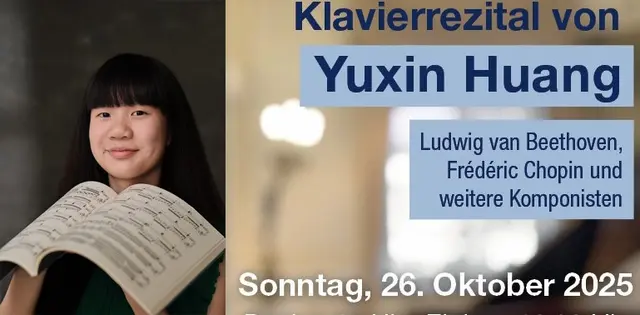 Yuxin Huang wurde 2011 geboren und begann im Alter von sechs Jahren mit dem Klavierspiel – zunächst bei Kristina Legostaeva in Delmenhorst und seit 2020 bei Uwe Balser in Heidelberg. Bald folgten Erfolge bei nationalen und internationalen Wettbewerben. So gewann sie nicht nur den Robert-Schumann-Wettbewerb 2022 in Zwickau, sondern auch den Grotrian-Steinweg-Wettbewerb 2024 in Braunschweig. Beim internationalen Young Euregio Piano Award 2024 wurde sie mit dem 3. Preis in der Kategorie A ausgezeichnet.