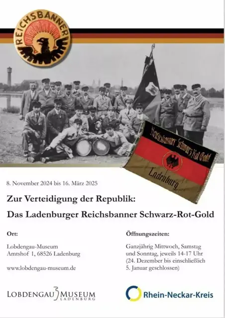 Am Freitag, 17. Oktober um 18.00 Uhr findet die letzte Führung in der Sonderausstellung des Kreisarchivs Rhein-Neckar-Kreis mit dem Lobdengau-Museum der Stadt Ladenburg "Zur Verteidigung der Republik: das Ladenburger Reichsbanner Schwarz-Rot-Gold" mit Dr. Jörg Kreutz und Dr. Andreas Hensen statt