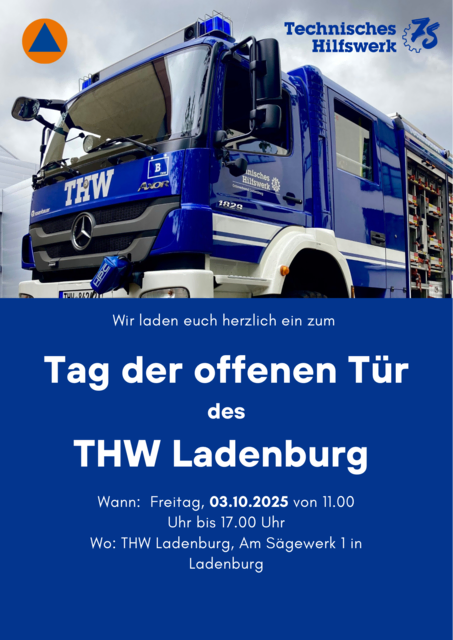 Am Freitag, den 03. Oktober 2025, öffnet der Ortsverband des Technischen Hilfswerks (THW) Ladenburg seine Tore und lädt die Bevölkerung herzlich zu einem Tag der offenen Tür ein. Von 11:00 bis 17:00 Uhrerwartet die Besucherinnen und Besucher ein abwechslungsreiches Programm für die ganze Familie.