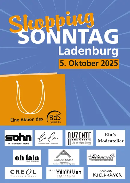Am 5. Oktober findet ein verkaufsoffner Sonntag des Bund der Selbstständigen statt, an dem 10 Einzelhandelsgeschäfte teilnehmen werden. Shopping-Sonntage in Ladenburg sind immer ein Gewinn, denn an solchen Tagen wird in aller Regel ohne Zeitdruck und mit viel Gelassenheit gebummelt.