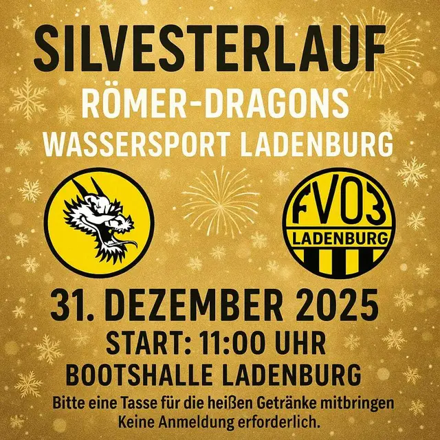 Die Römer Dragons Wassersportabteilung in Ladenburg, laden auch in diesem Jahr wieder zu ihrem traditionellen Silvesterlauf ein. Am 31. Dezember 2025 haben Sportbegeisterte und Zuschauer die Möglichkeit, das Jahr gemeinsam aktiv ausklingen zu lassen. Der Treffpunkt ist um 10:45 Uhr an der Bootshalle, direkt neben dem Eingang des Römerstadions. Der Startschuss fällt um 11:00 Uhr. Gelaufen wird eine Strecke von rund sechs Kilometern, verteilt auf fünf Runden, die je nach Lust und Laune gelaufen...