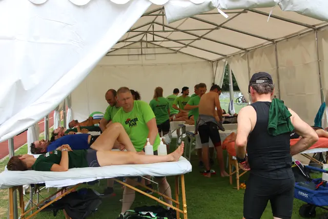 - Dieses Begrüßungskonzert ist einmalig in der Triathlon-Szene. Bevor die Triathleten mit dem Dampfer „Königin Silvia“ in Richtung Start nach Edingen schipperten, konnten sie sich noch ein kleines Alphorn-Konzert auf der Festwiese anhören. Der Titel „Erklimmt den Berg“, den die Alphorn-Bläser Günter, Gina, Ute, Rudolf, Werner und Wolf-Rüdiger von den Kurpfälzer Alphorn-Bläsern präsentierten war eine echte Motivationshilfe, die ihre Wirkung nicht verfehlte. - Einen erstklassigen Job leistete...